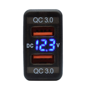 Toyota Vigo Dual USB QC3.0 Charger & Voltmeter (40x20mm) - Blue LED